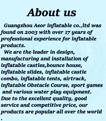 Productos principales:Casa de rebote inflable, tobogán inflable, Parque Acuático inflable, tienda de burbujas inflable